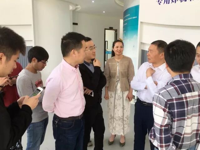 朱市长一行到达后马上到加效车间看创新产品——物联网云控制系统:【焊机云】。